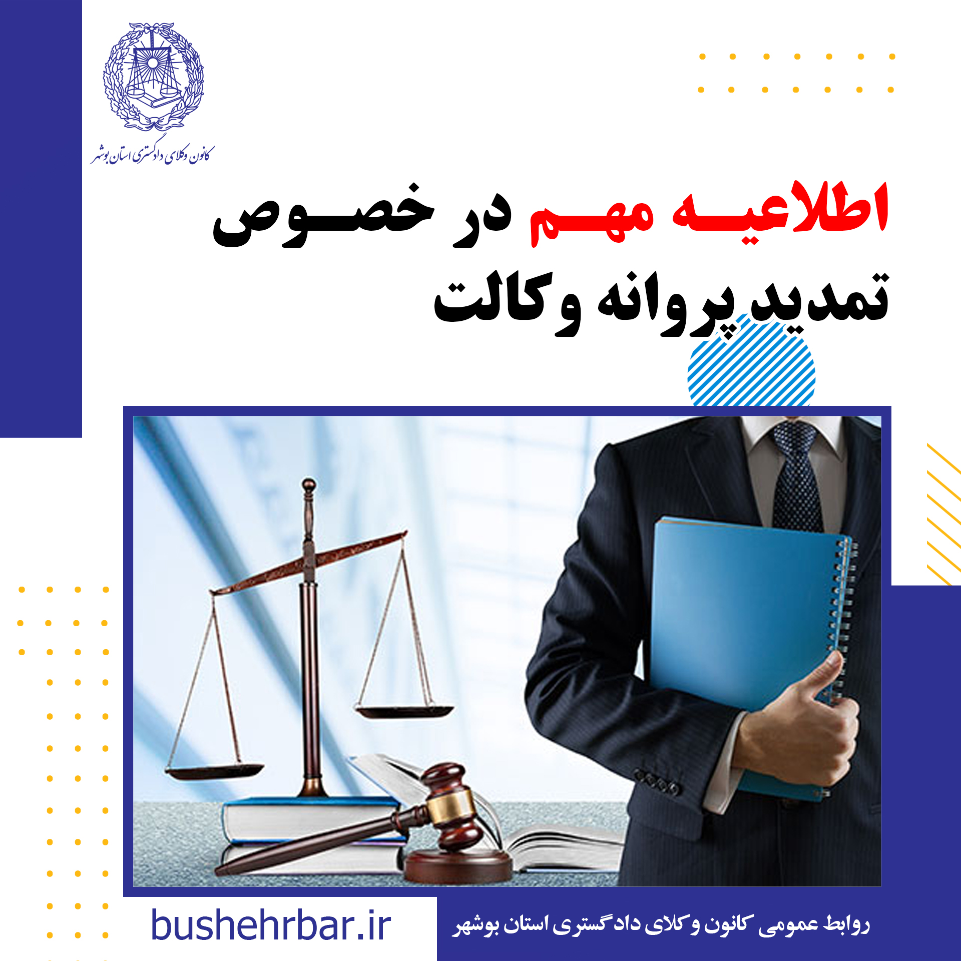 اطلاعیه مهم در خصوص تمدید پروانه وکالت