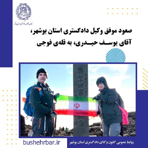 همکار کوه پیما و پرتلاش کانون استان بوشهر، یوسف حیدری، به همراه همسر گرامیشان، بهناز بنهگزی، قلهی افسانهای فوجی، بلندترین قله ژاپن با ارتفاع ۳۷۷۶ متر را با شجاعت صعود کردند...