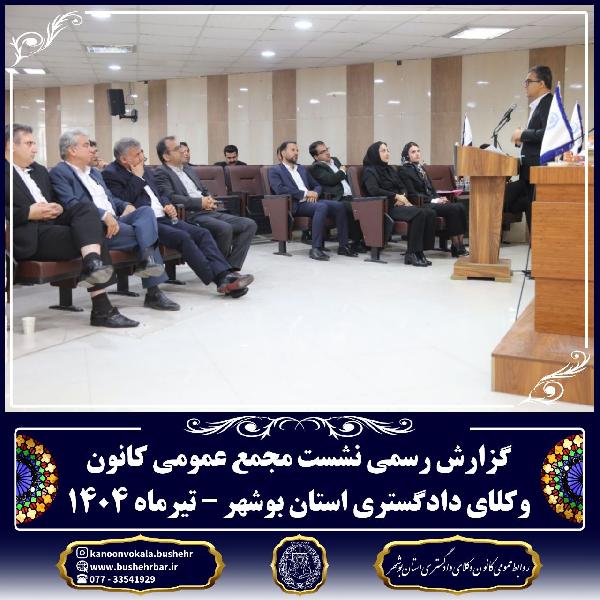 گزارش برگزاری جلسه مجمع عمومی کانون وکلای دادگستری استان بوشهر سهشنبه ۲۴ تیر ۱۴۰۴ – ساعت ۱۰ تا ۱۳:۳۰