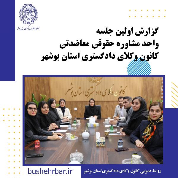 گزارش اولین جلسه واحد مشاوره حقوقی معاضدتی کانون وکلای دادگستری استان بوشهر