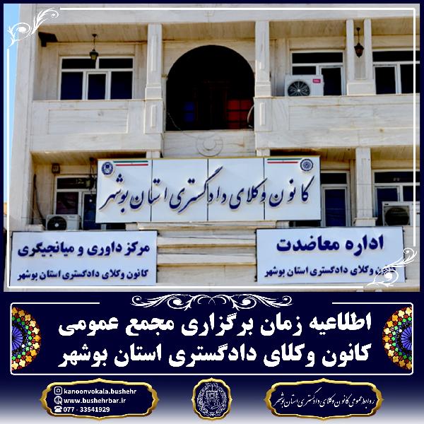 اطلاعیه زمان برگزاری مجمع عمومی کانون وکلای دادگستری استان بوشهر